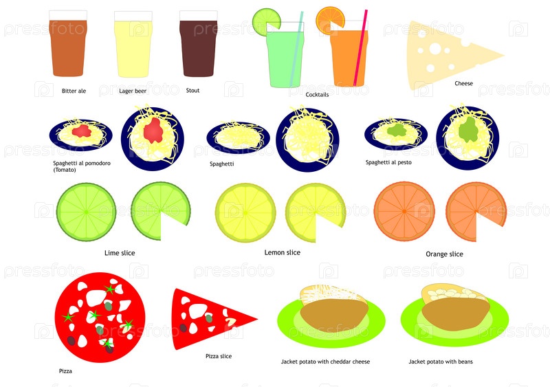 Еда и напитки, изолированные на белом фоне