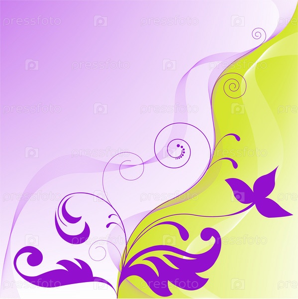 Абстрактный желто-фиолетовый фон с растительными элементами