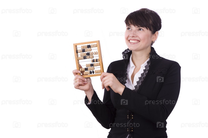 Молодая бизнес-леди со счетами в руках