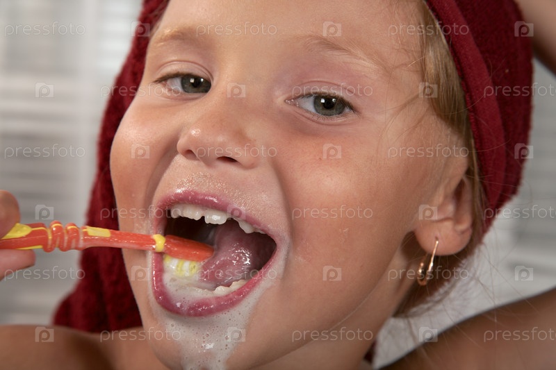 Маленькая девочка чистит зубы