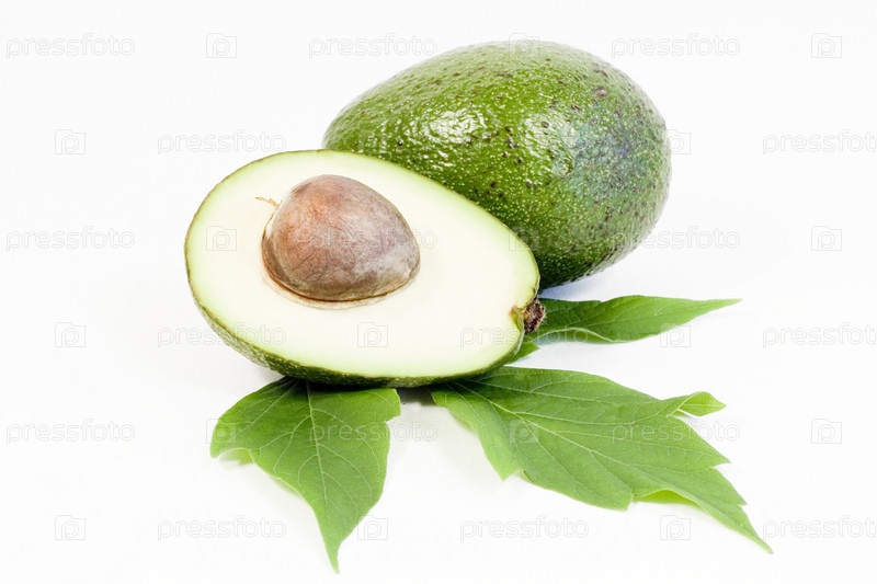 Зеленый авокадо на белом фоне