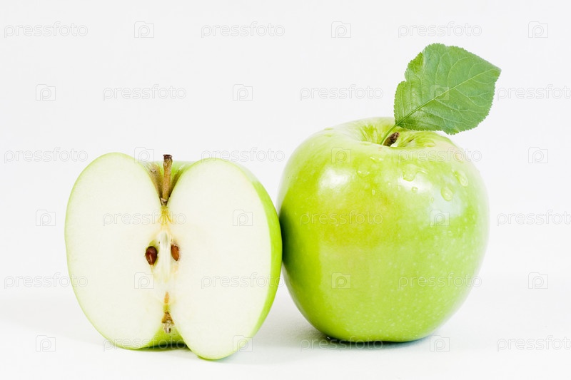 Зеленое яблоко на белом фоне