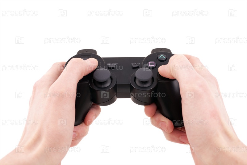 Джоистик в руках на белом фоне