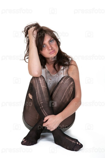 Портрет бездомной девушки на белом фоне
