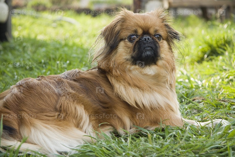 Пекинес лежит на траве