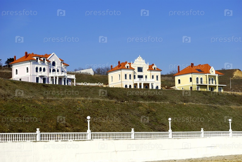 Белые коттеджи на фоне неба