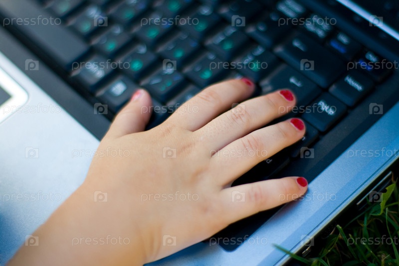 Рука на ноутбуке крупным планом