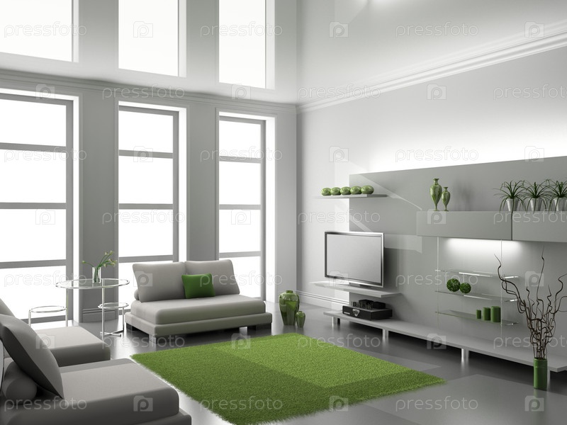 Современный интерьер гостиной, 3D