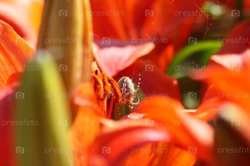 Паук свил паутину на цветке