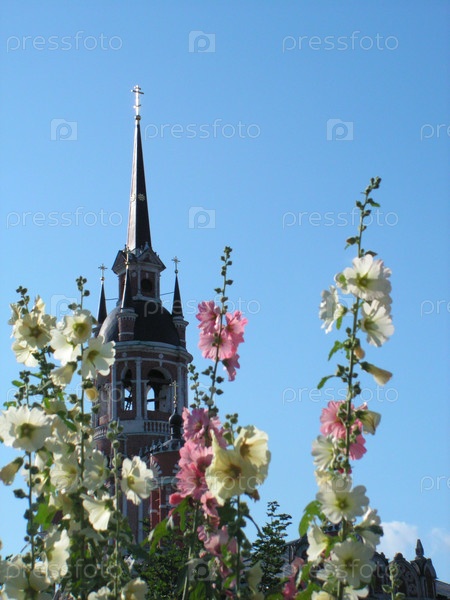 Вид на церковь сквозь цветы