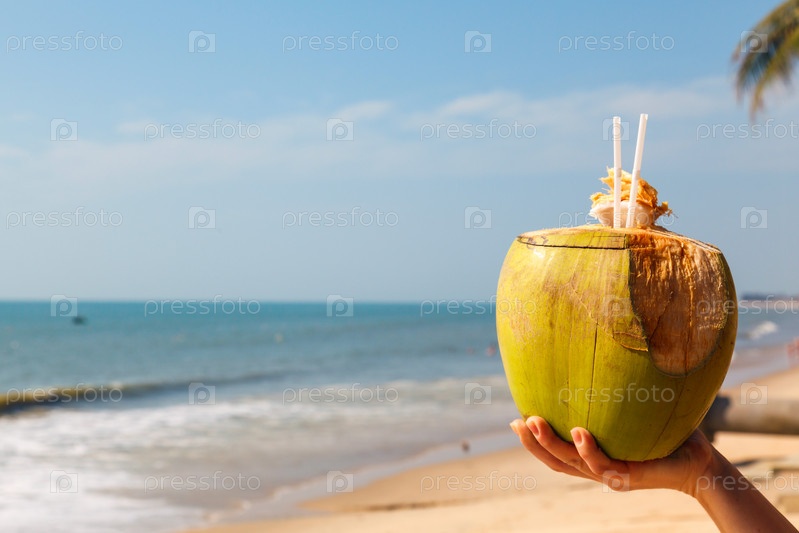 Кокос в женской руке
