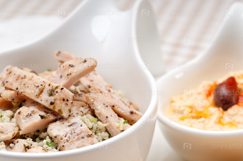 Куриный табуле с кускусом и хумусом