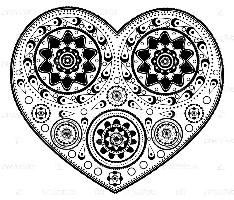 Монохромное сердце с орнаментом