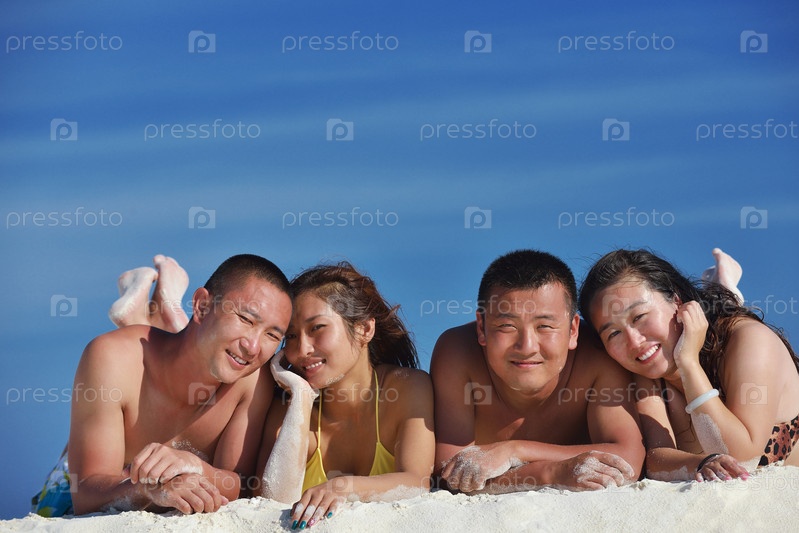 Счастливые молодые люди отдыхают на пляже