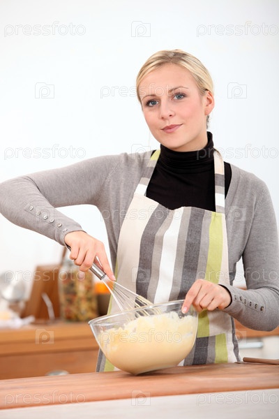 Женщина взбивает тесто