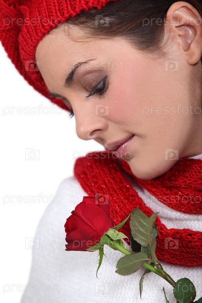 Брюнетка нюхает розу
