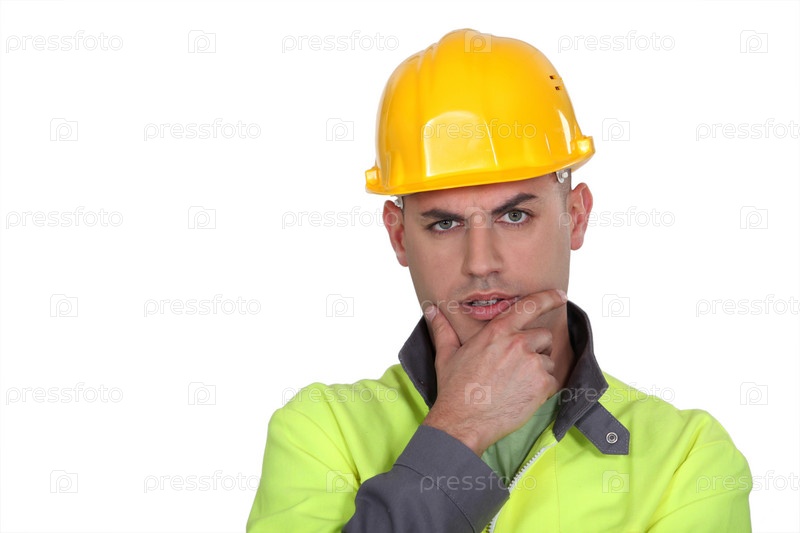 Сомневающийся строительный рабочий