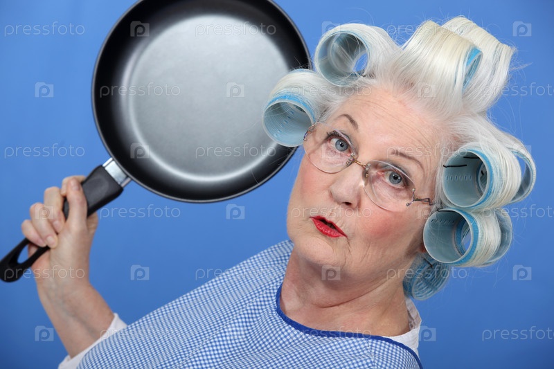Пожилая дама атакует со сковородкой в руке