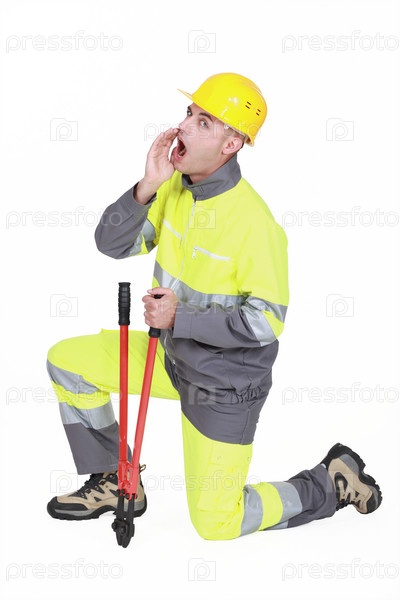 Кричащий строитель с болторезом
