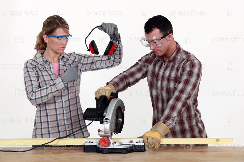 Женщина проверяет использование рабочив средства защиты органов слуха
