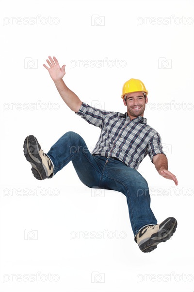 Прыгающий молодой рабочий
