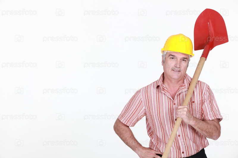 Седой мужчина с лопатой
