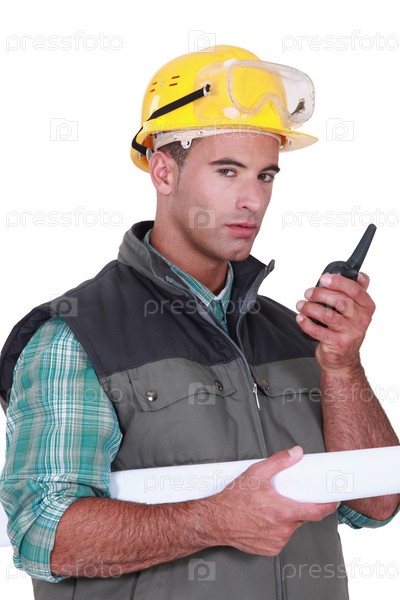 Молодой прораб общается по рации