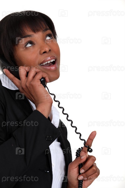 Бизнес-леди получает хорошие новости по телефону