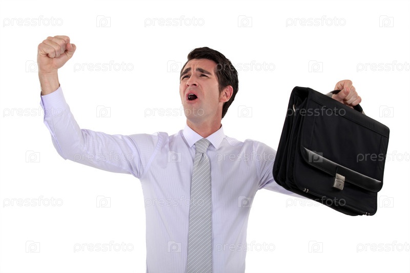 Счастливый бизнесмен с поднятыми руками