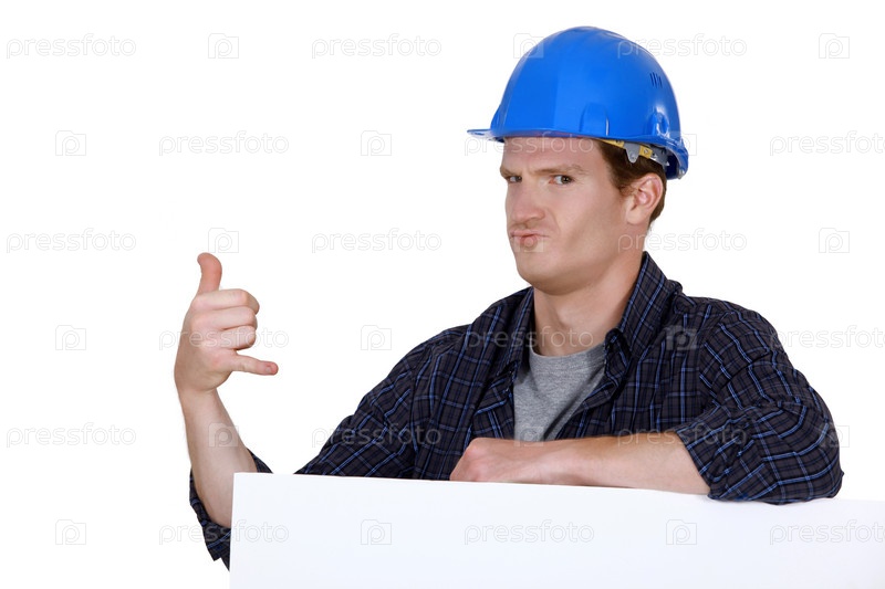 Строитель с жестом "позвони мне"