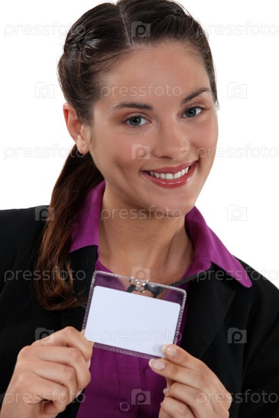 Брюнетка гордо демонстрирует свой пропуск