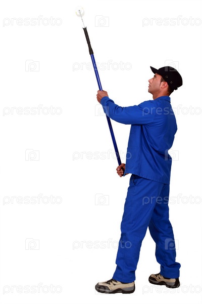 Маляр красит потолок