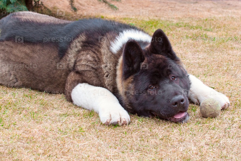 Уставшая молодая собака акита ину