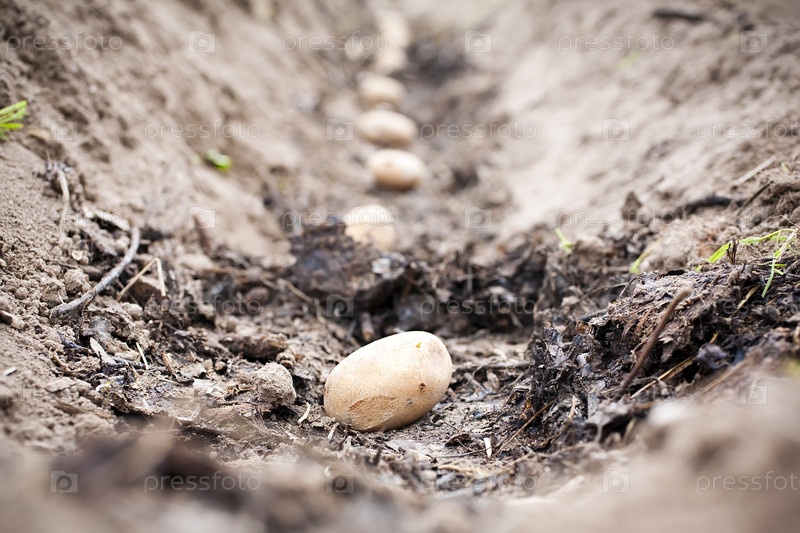 Клубни картофеля в борозде