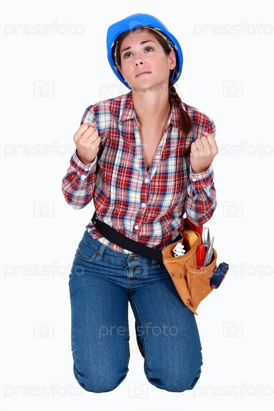 Отчаявшаяся женщина-строительный рабочий
