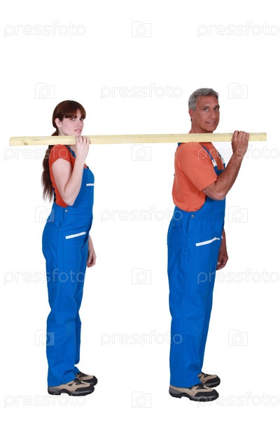 Рабочие несут деревянную доску