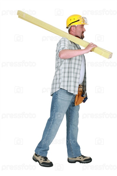 Строитель несет древесину