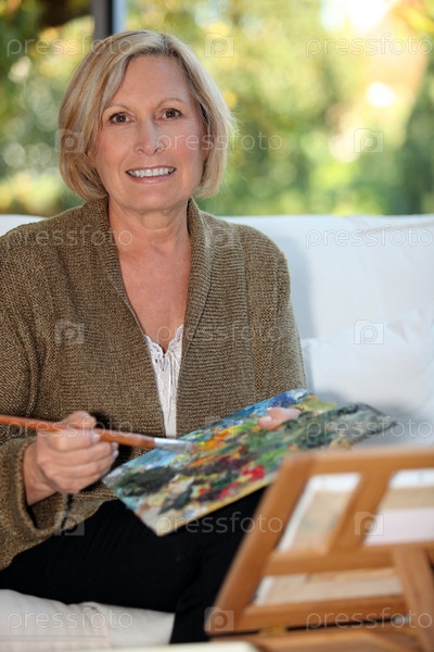 Пятидесятилетняя женщина рисует