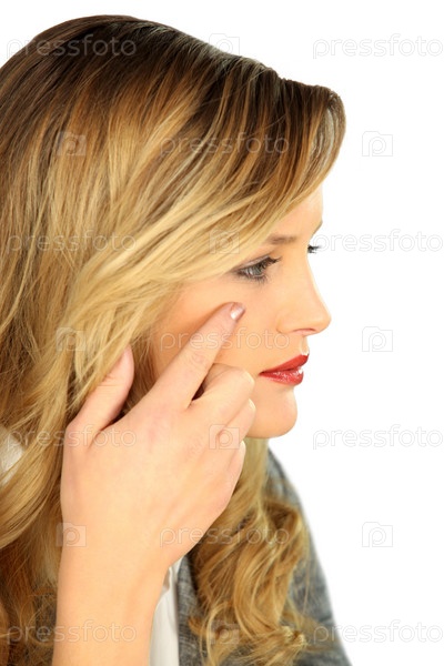 Красивая блондинка наносит крем