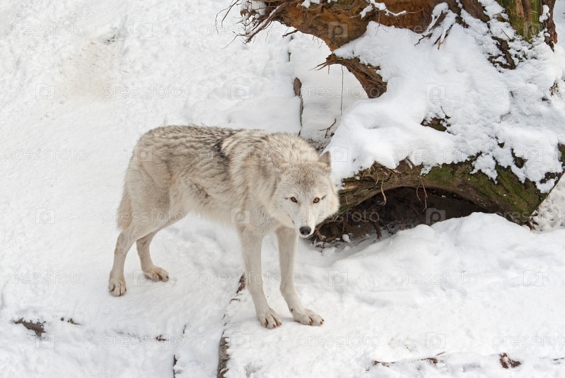Полярный волк (Canis Lupus Tundrarum) на снегу