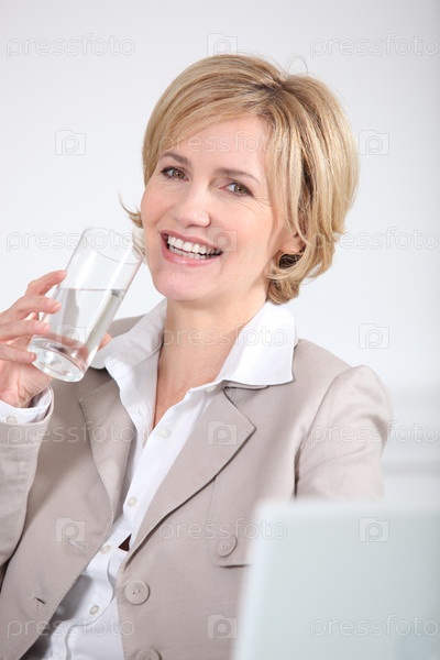 Портрет бизнес-леди со стаканом воды