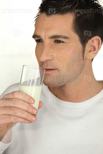 Мужчина пьет молоко