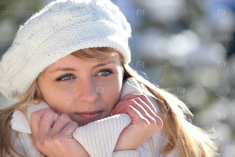 Женщина кутается в теплую одежду