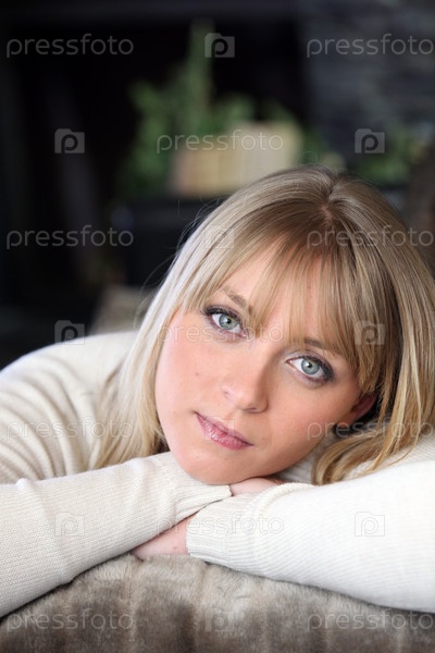 Блондинка лежит на диване