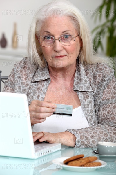 Пожилая женщина делает покупки онлайн