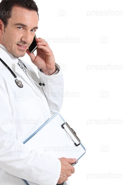 Врач использует телефон