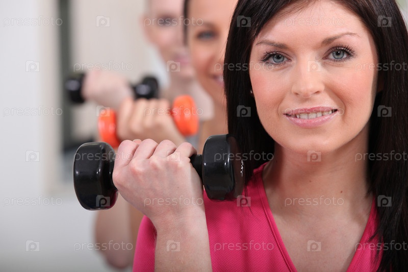 Девушки пожнимают гантели