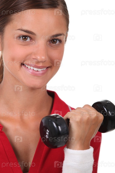 Женщина с гантелями в руках
