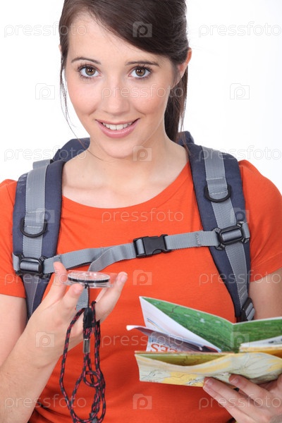 Путешественник смотрит на компас
