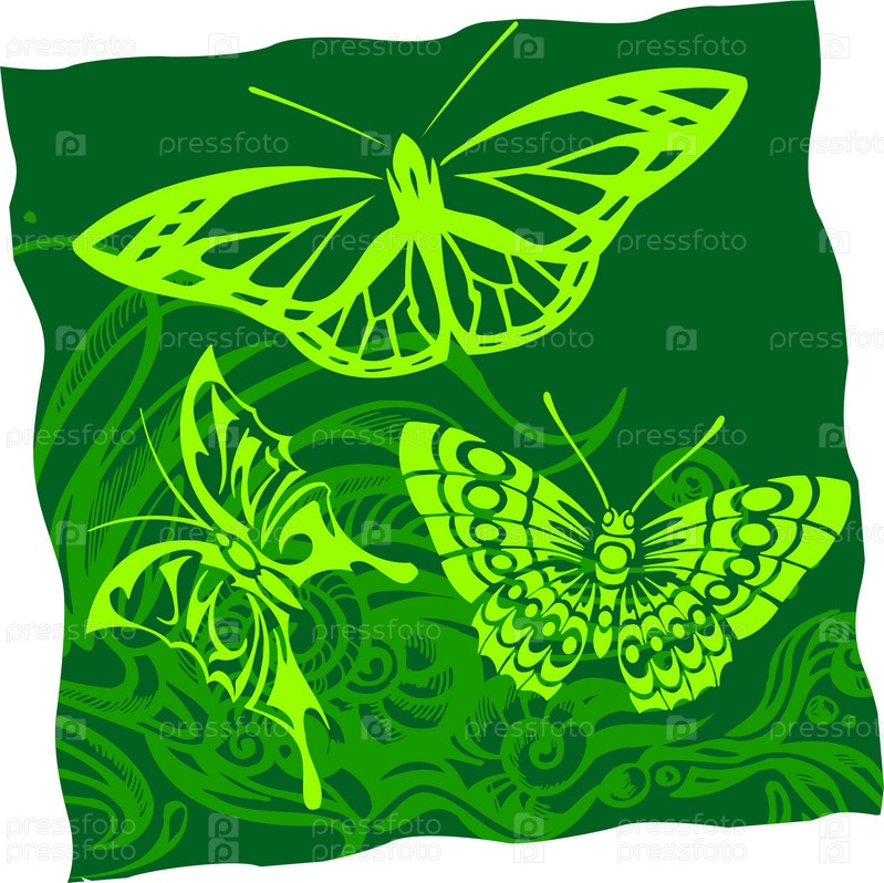 Абстрактные бабочки на зеленом фоне